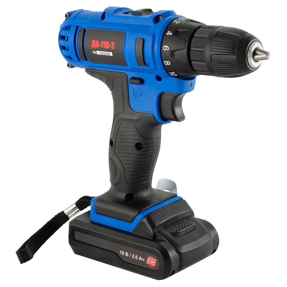Поставляется в пластиковом кейсе с двумя аккумуляторами и битой.