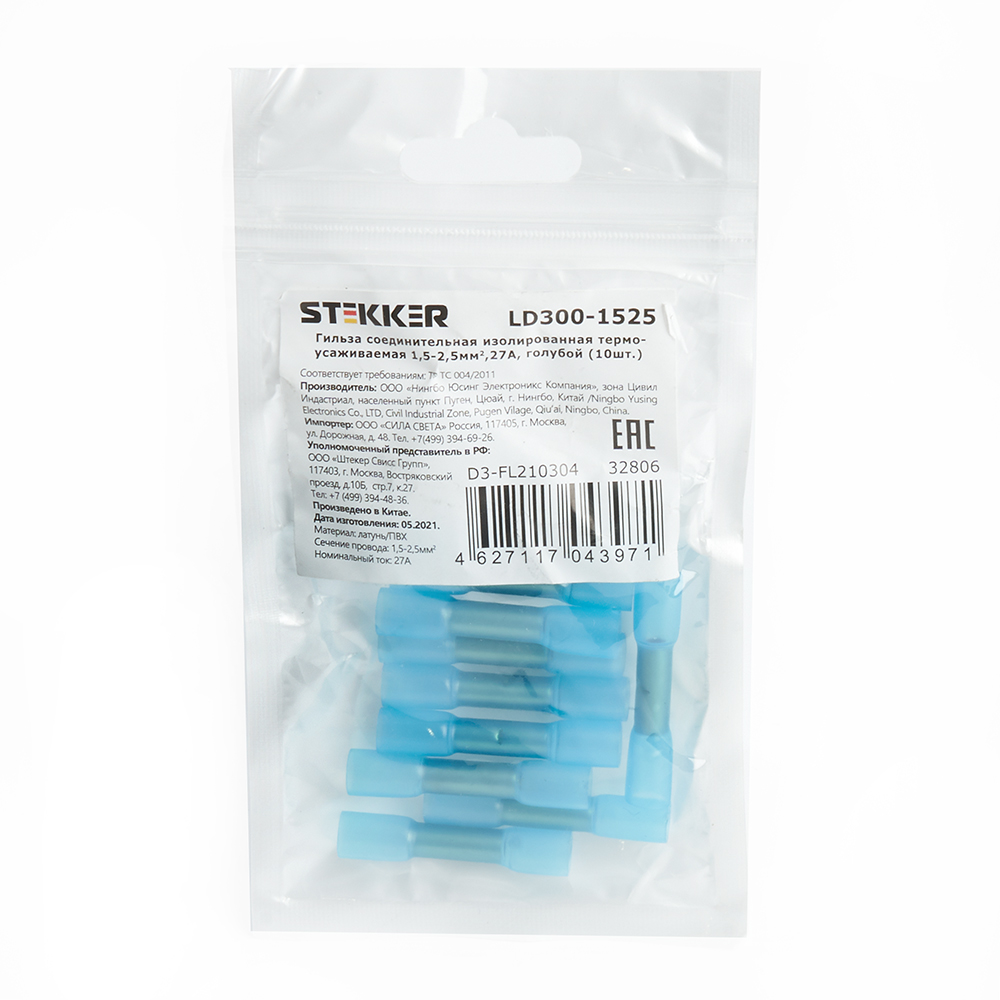 Гильза соединительная изолированная термоусаживаемая STEKKER LD300-1525 сечение 1,5-2,5мм2, 27A, голубой (DIY упак 10шт) |