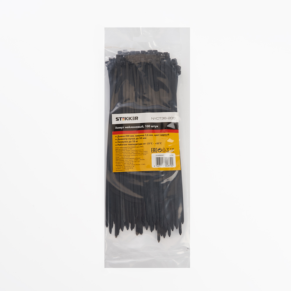 Хомут нейлоновый STEKKER NYCT36-200 3,6x200 мм, d пучка max 50 мм, нагрузка 18 кг, белый, упаковка 100 шт |