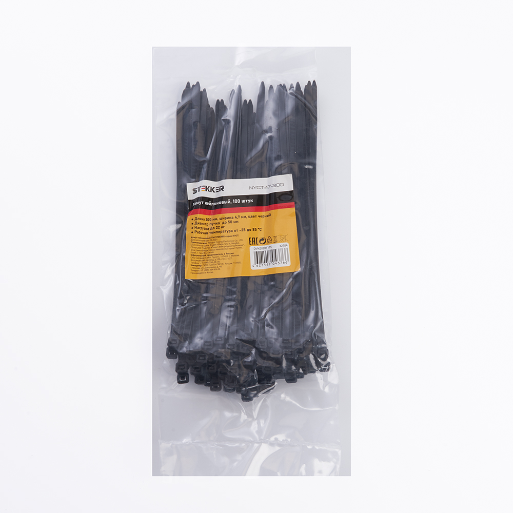 Хомут нейлоновый STEKKER NYCT47-200 4,7х20 мм, d пучка max 50 мм, нагрузка 22кг, черный, упаковка 100 шт |