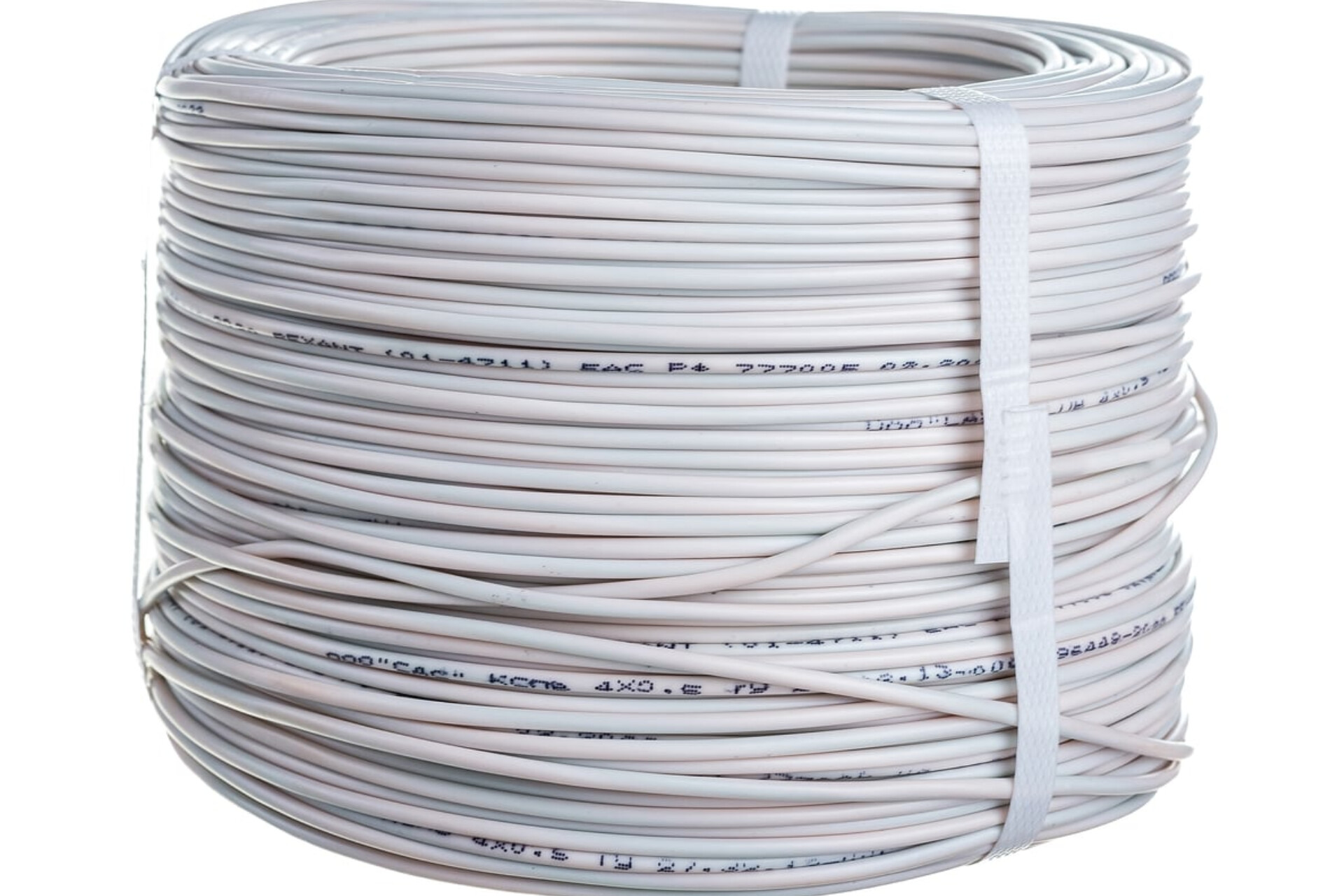 4 однопроволочные токопроводящие жилы диаметром 0,5 мм выполнены из меди и подвергнуты 100% отжигу, благодаря чему кабель становится мягче, что упрощает процесс монтажа и увеличивает срок службы.