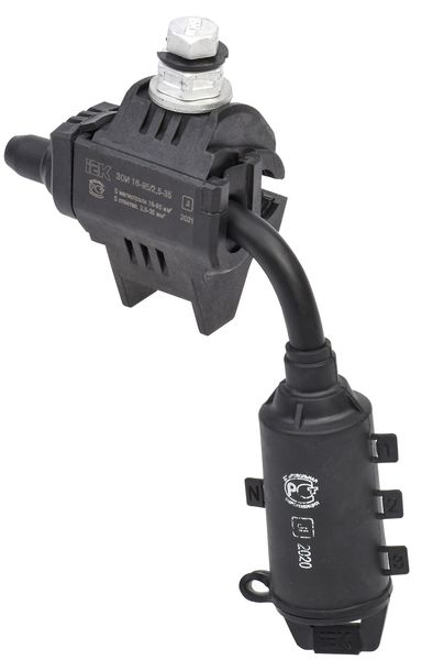Комплект для наложения заземления КНЗ-95 IEK предназначен для подключения переносного защитного заземления при выполнении работ на воздушной линии электропередач напряжением до 1 кВ. Комплект состоит из прокалывающего зажима и адаптера для закороток и заземления.