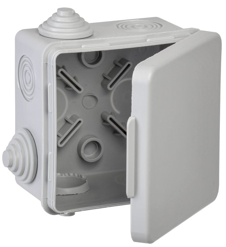 В комплект коробки входят ступенчатые сальники гермовводы для присоединения гофрированных или гладких труб.