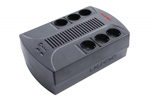 Входное напряжение: 165-295 В, количество выходов с фиксированным подключением - 6. Выходная мощность – 600 ВА, эффективная выходная мощность – 360 Вт. Устройство обеспечивает подключенному оборудованию 5 минут работы при полной загрузке.