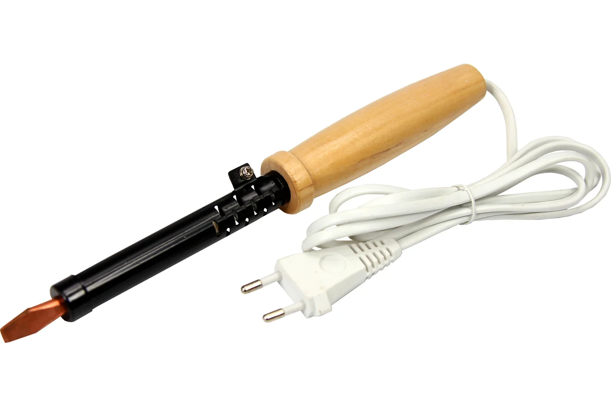 Медное жало выполнено в форме клина лопатки, в случае необходимости его можно легко и быстро заменить сменное жало в комплект не входит.