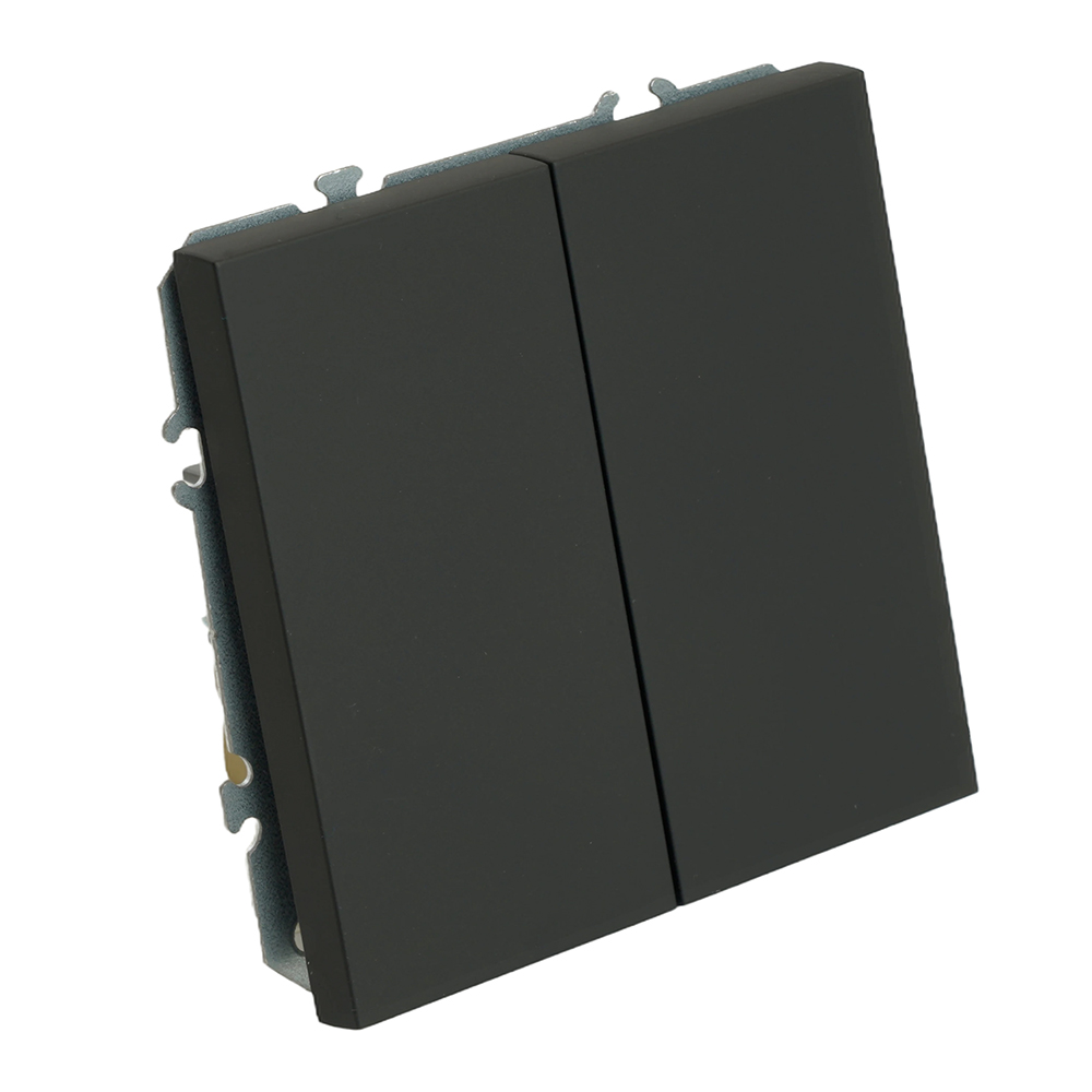 Переключатель 2-клавишный (механизм), STEKKER, 250В, 10А, серия Эмили, RSW10-5107-05, черный уголь, soft touch |