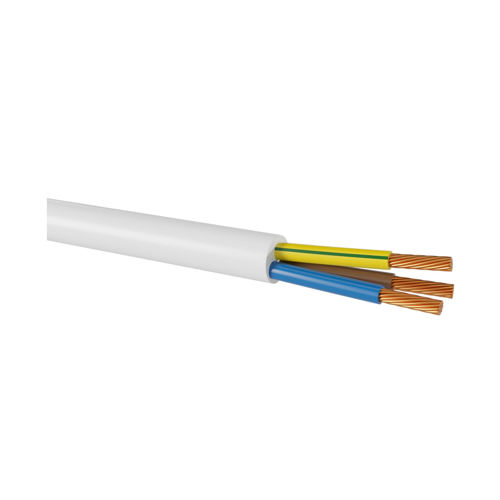 Количество жил 3, изолированные друг от друга, сечение 1,5, цвет оболочки белый, завод "Евкабель".