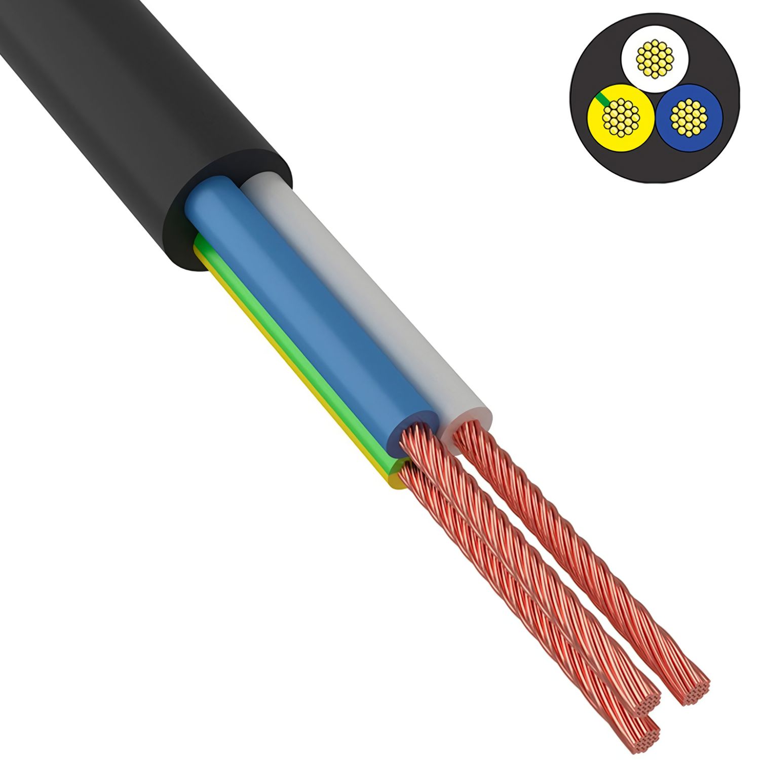 Количество жил 3, изолированные друг от друга, сечение 2,5, цвет оболочки черный, завод "Электрокабель НН".
