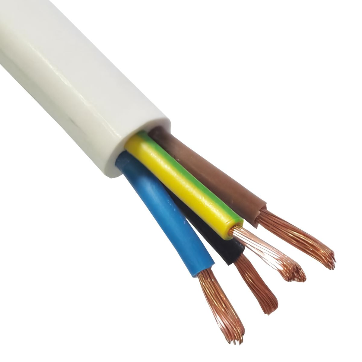 Количество жил 4, изолированные друг от друга, сечение 0,75, цвет оболочки белый, завод "Альгиз".