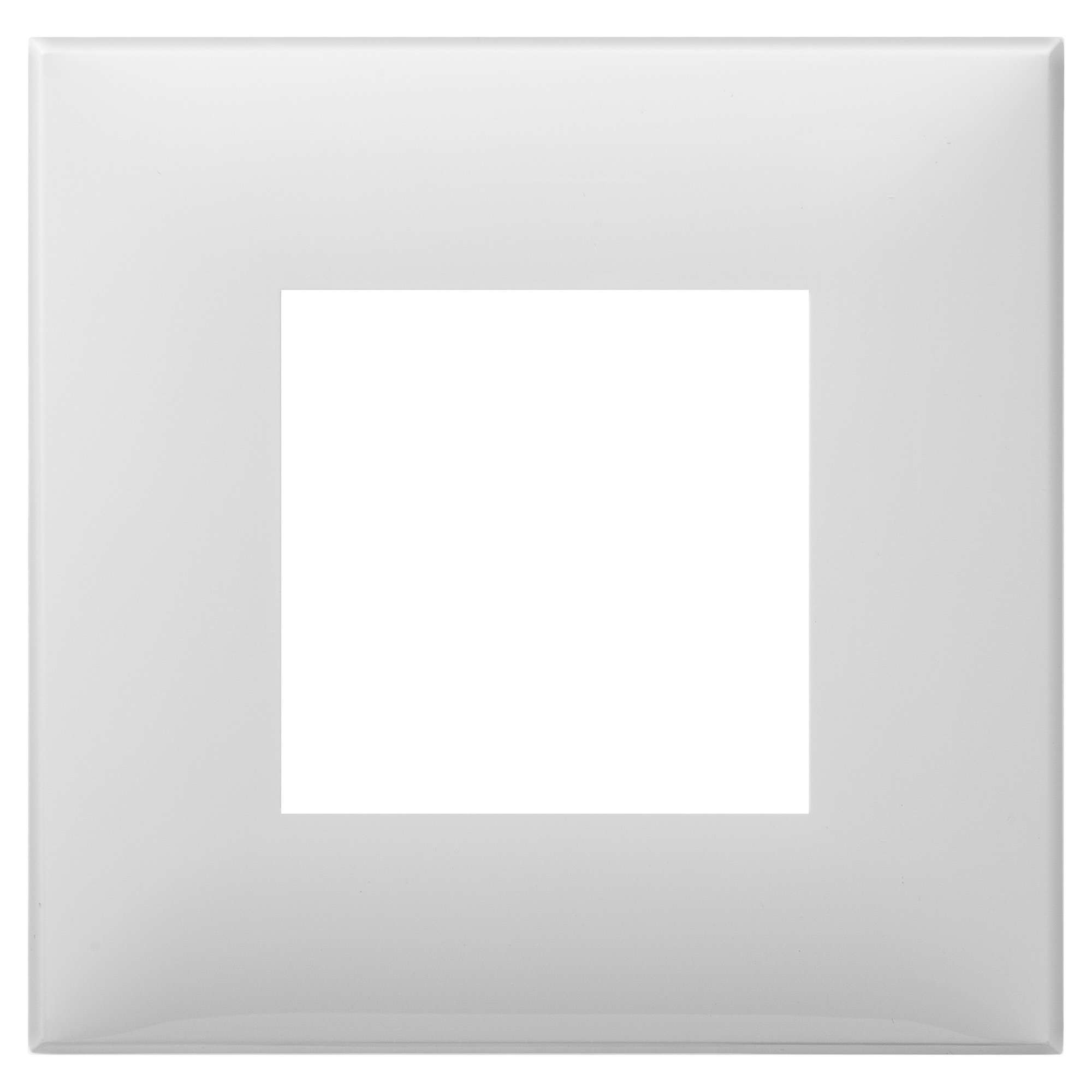 Рамка имеет 1 место под электроустановочное изделие максимальная вместимость – 2 модуля, может размещаться как горизонтально, так и вертикально. Габаритные размеры: 90х90 мм. Материал – термопласт.