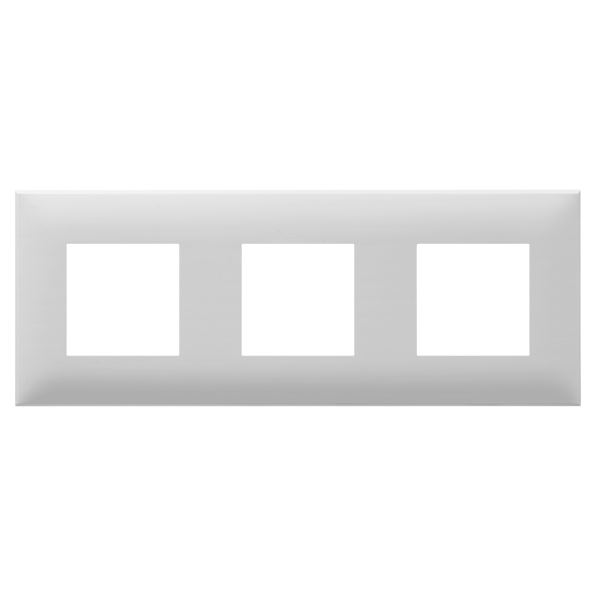 Рамка имеет 3 места под электроустановочные изделия максимальная вместимость – 6 модулей, может размещаться как горизонтально, так и вертикально. Габаритные размеры: 235х90 мм. Материал – термопласт.
