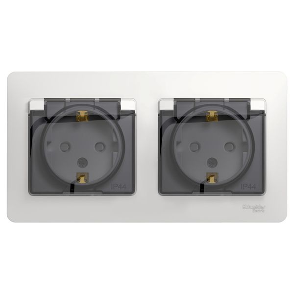 GLOSSA РОЗЕТКА двойная с заземлением, со шторками, в сборе, IP44, БЕЛЫЙ |