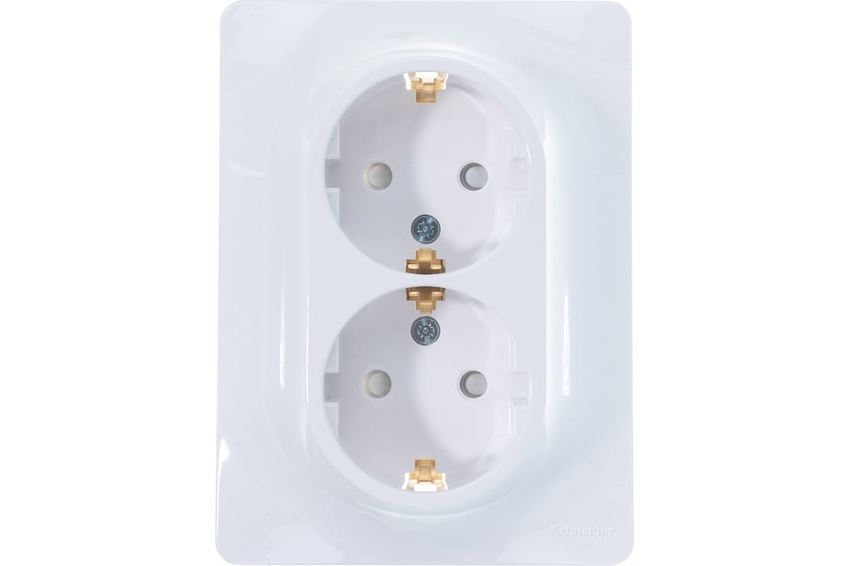 GLOSSA РОЗЕТКА двойная с заземлением со шторками, 16А, в сборе, БЕЛЫЙ |