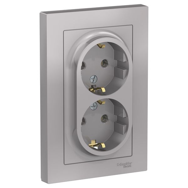 ATLASDESIGN РОЗЕТКА двойная с заземлением, 16А, в сборе, АЛЮМИНИЙ |