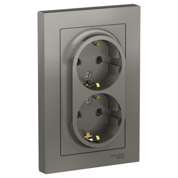 ATLASDESIGN РОЗЕТКА двойная с заземлением, 16А, в сборе, СТАЛЬ |