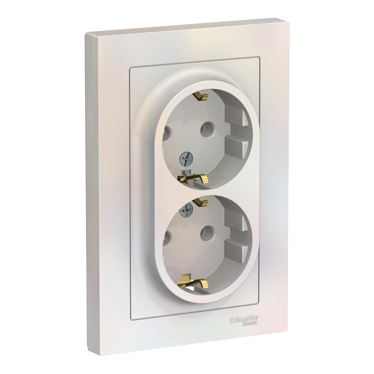 ATLASDESIGN РОЗЕТКА двойная с заземлением, 16А, в сборе, ЖЕМЧУГ |