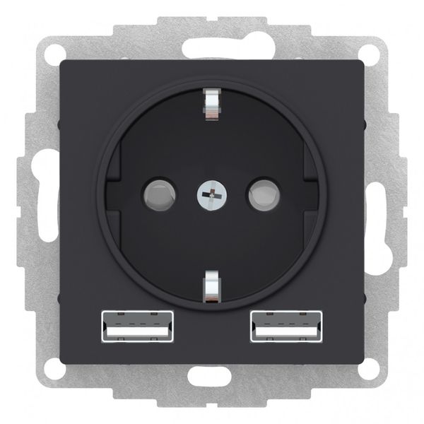 ATLASDESIGN РОЗЕТКА 16А c 2 USB A A, 5В/2,4А, 2х5В/1,2 А, механизм, КАРБОН |