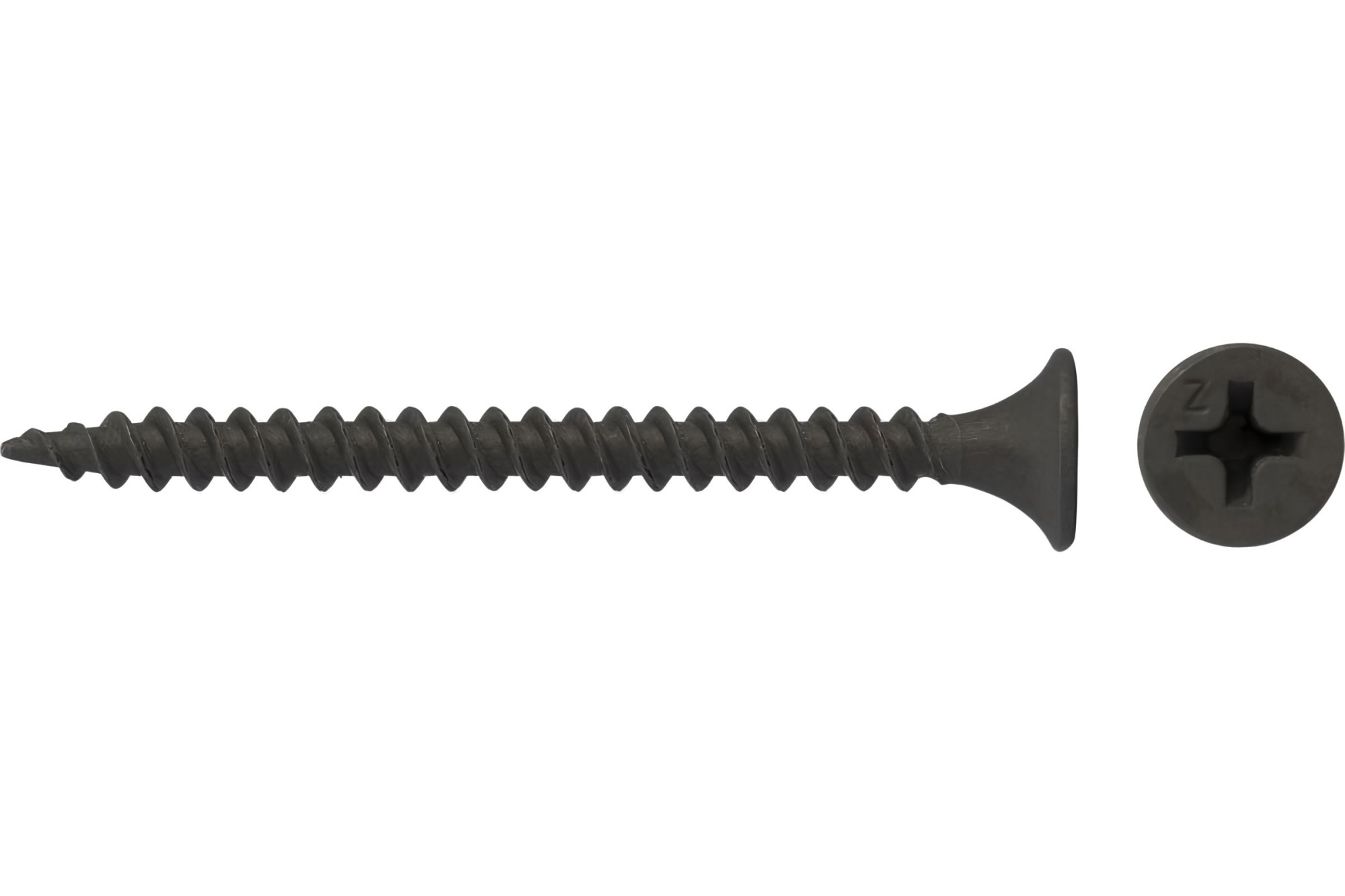 Материал сталь С1018. Покрытие черный фосфат. Частая двухзаходная резьба, голова рожковая потайная.