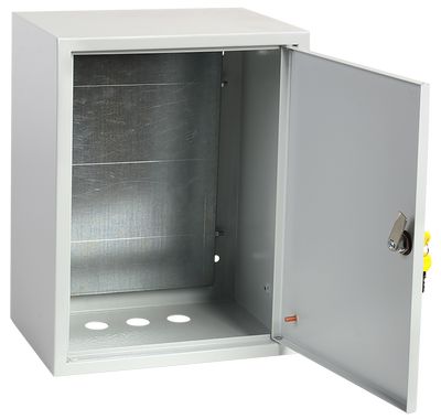 Металлический корпус со съемной монтажной панелью. Дверца корпуса запирается на замок. Ключ замка имеет единый секрет.