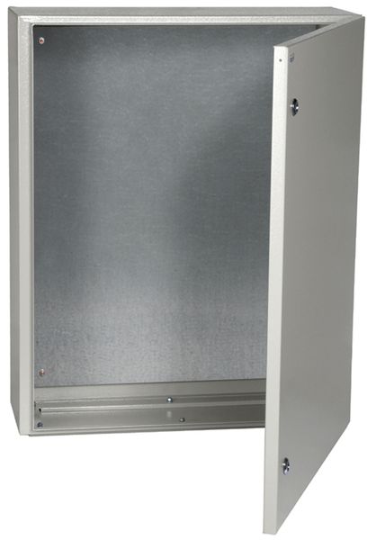 Сварной металлический корпус со съемной монтажной панелью. Дверца корпуса запирается на замок. Ключ замка имеет единый секрет.