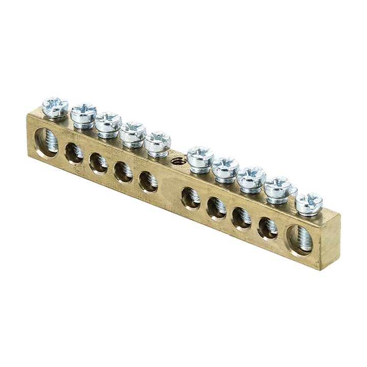Busbar PEN "zero-ground" (6х9mm) 10 holes brass clamping in the center EKF PROxima |