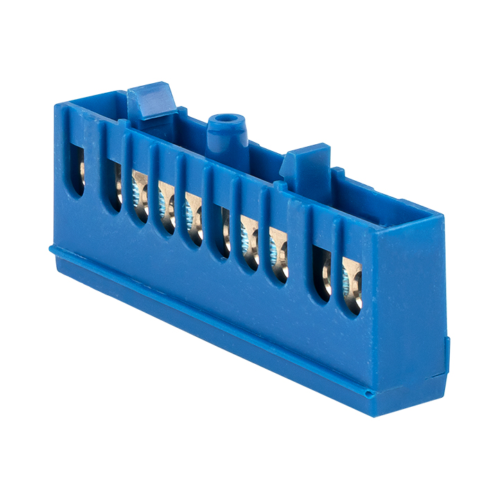 Busbar "0" N (6х9mm) 10 holes brass blue insulated casing for a DIN rail EKF PROxima |