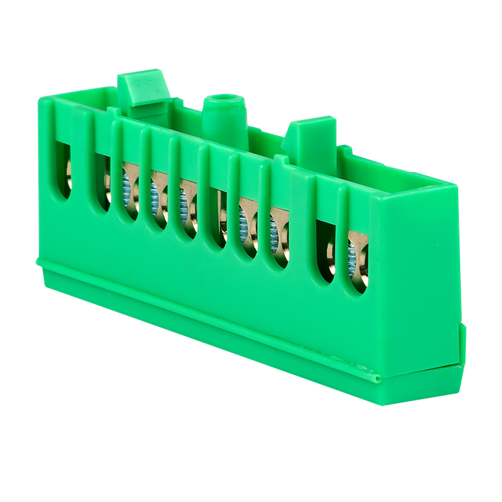 Busbar "0" PE (6х9mm) 10 holes brass green insulated casing for a DIN rail EKF PROxima |