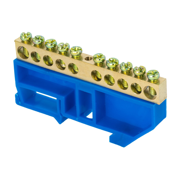 Busbar "0" N (8х12mm) 10 holes brass blue Insulator for a DIN rail retail sticker EKF PROxima |