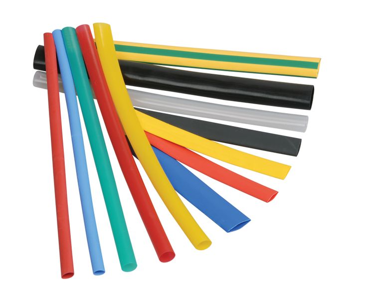 Термоусадочная трубка изготавливается в следующих цветовых исполнениях: белые, желтые, желто-зеленые, зеленые, красные, синие и черные.