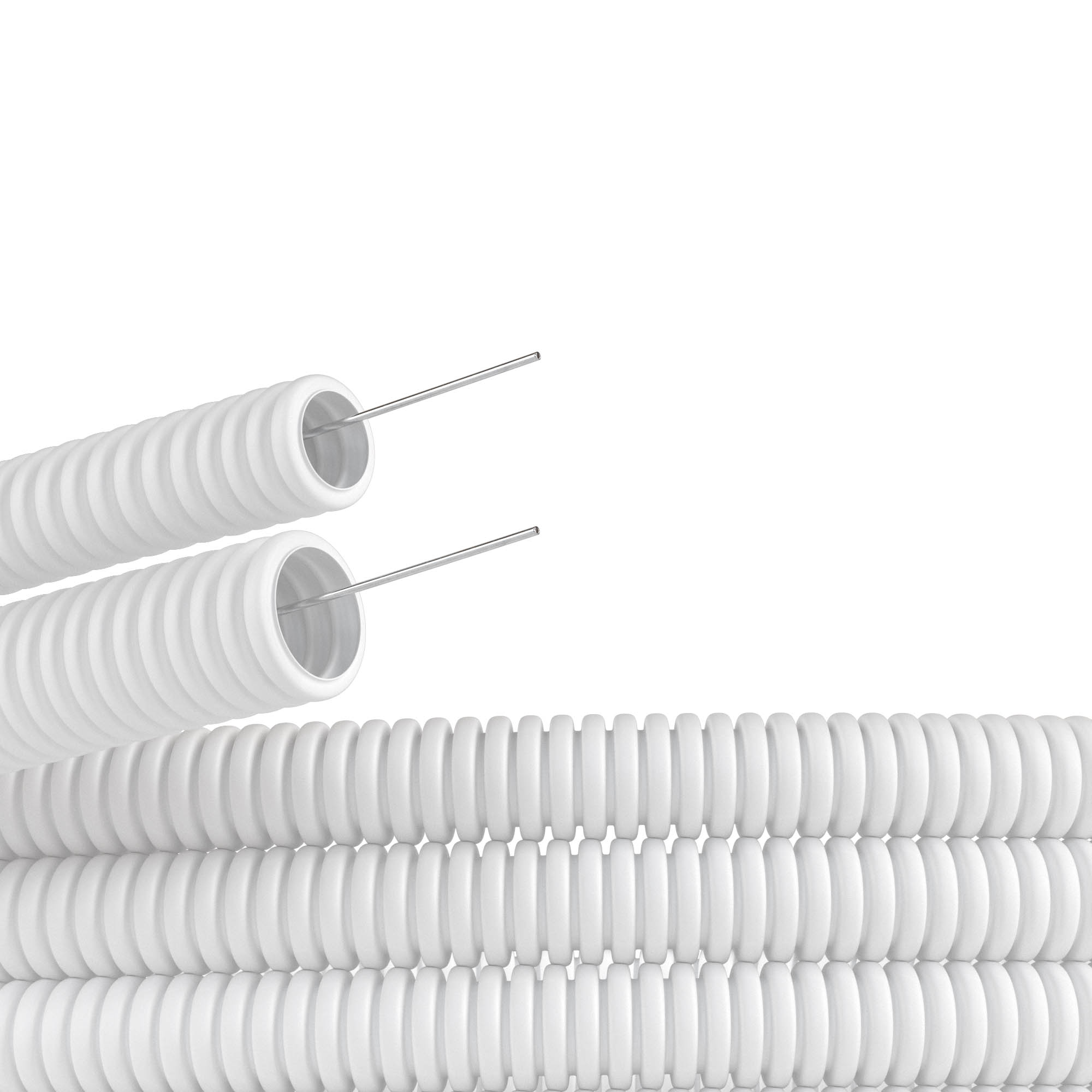 Гибкая труба, не поддерживающая горение, имеет диаметр 16 мм. Для облегчения прокладки кабеля в комплект входит протяжка. Цвет - белый.