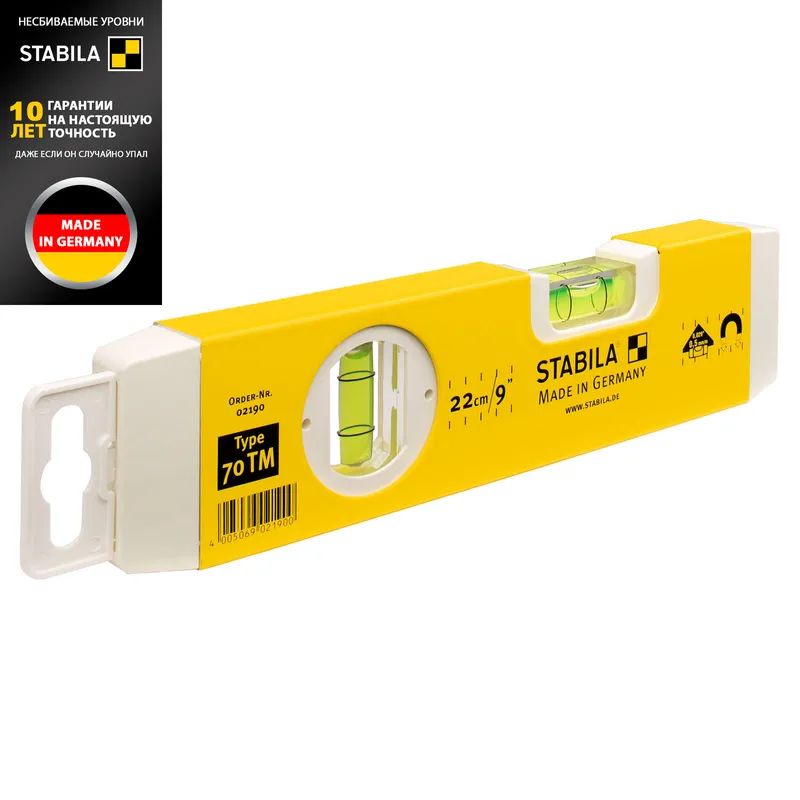 Уникальная технология сборки уровней STABILA обеспечивает точность измерений на протяжении долгого времени. Точность измерения в нормальном положении составляет ± 0,5 мм/м.