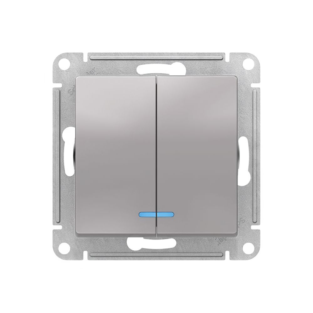ATLASDESIGN 2-клавишный ВЫКЛЮЧАТЕЛЬ с подсвет., сх.5а, 10АХ, механизм, АЛЮМИНИЙ |